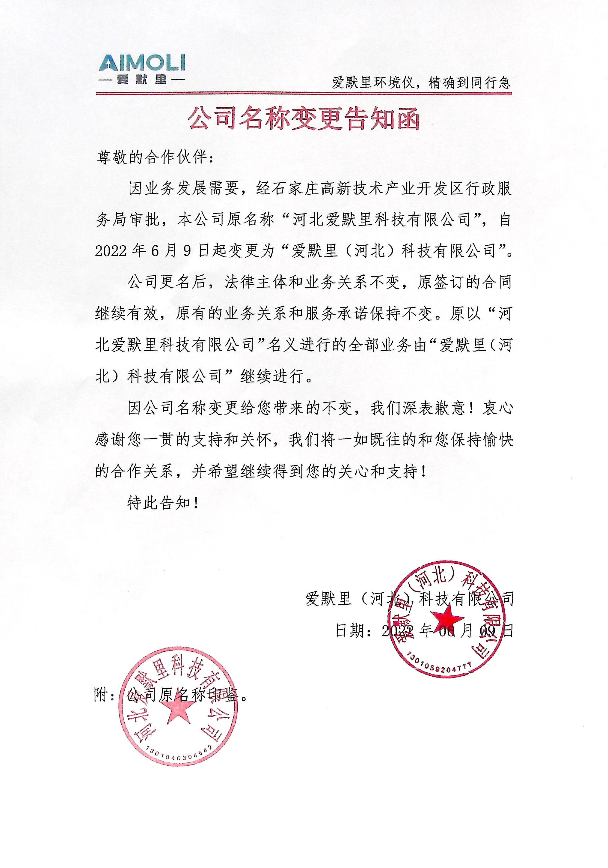 因業(yè)務(wù)發(fā)展需要,“河北愛(ài)默里科技有限公司”,變更為“愛(ài)默里(河北)科技有限公司”,特發(fā)此函: