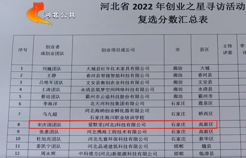 愛默里晉級河北省創(chuàng)業(yè)之星尋訪活動進入復選階段