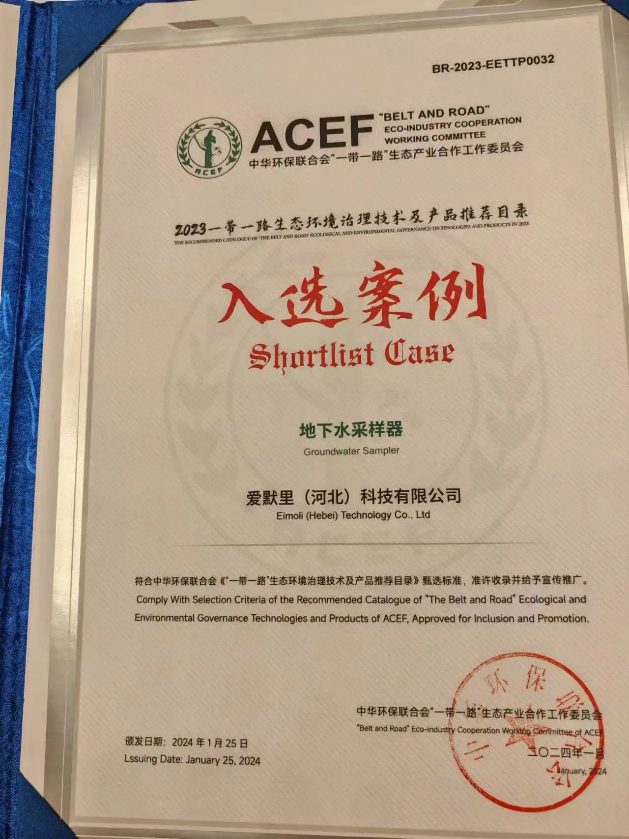 【喜報(bào)】走出去,愛默里地下水采樣器入選2023“一帶一路”生態(tài)環(huán)境治理技術(shù)及產(chǎn)品推薦目錄