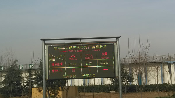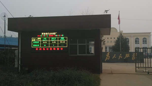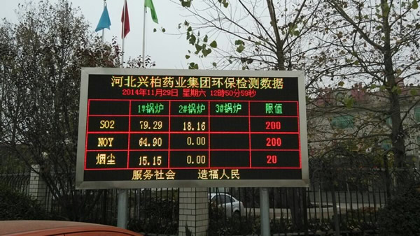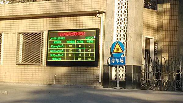 企業(yè)污染源監(jiān)測(cè)及信息公開(kāi)系統(tǒng)主要有三部分組成:智能數(shù)據(jù)采集終端、顯示數(shù)據(jù)采集軟件、雙基色LED室外顯示屏。結(jié)構(gòu)如圖1所示:在控制室安裝智能數(shù)據(jù)采集終端,采集三個(gè)動(dòng)態(tài)數(shù)據(jù)(“COD、NH3-N、流量”或“SO2、NOX、煙塵”);門衛(wèi)室安裝顯示數(shù)據(jù)采集軟件,采集數(shù)據(jù)并送室外顯示;雙基色 LED室外顯示屏、電子觸摸屏安裝在室外公眾易見(jiàn)處(可加裝視頻監(jiān)控頭)。