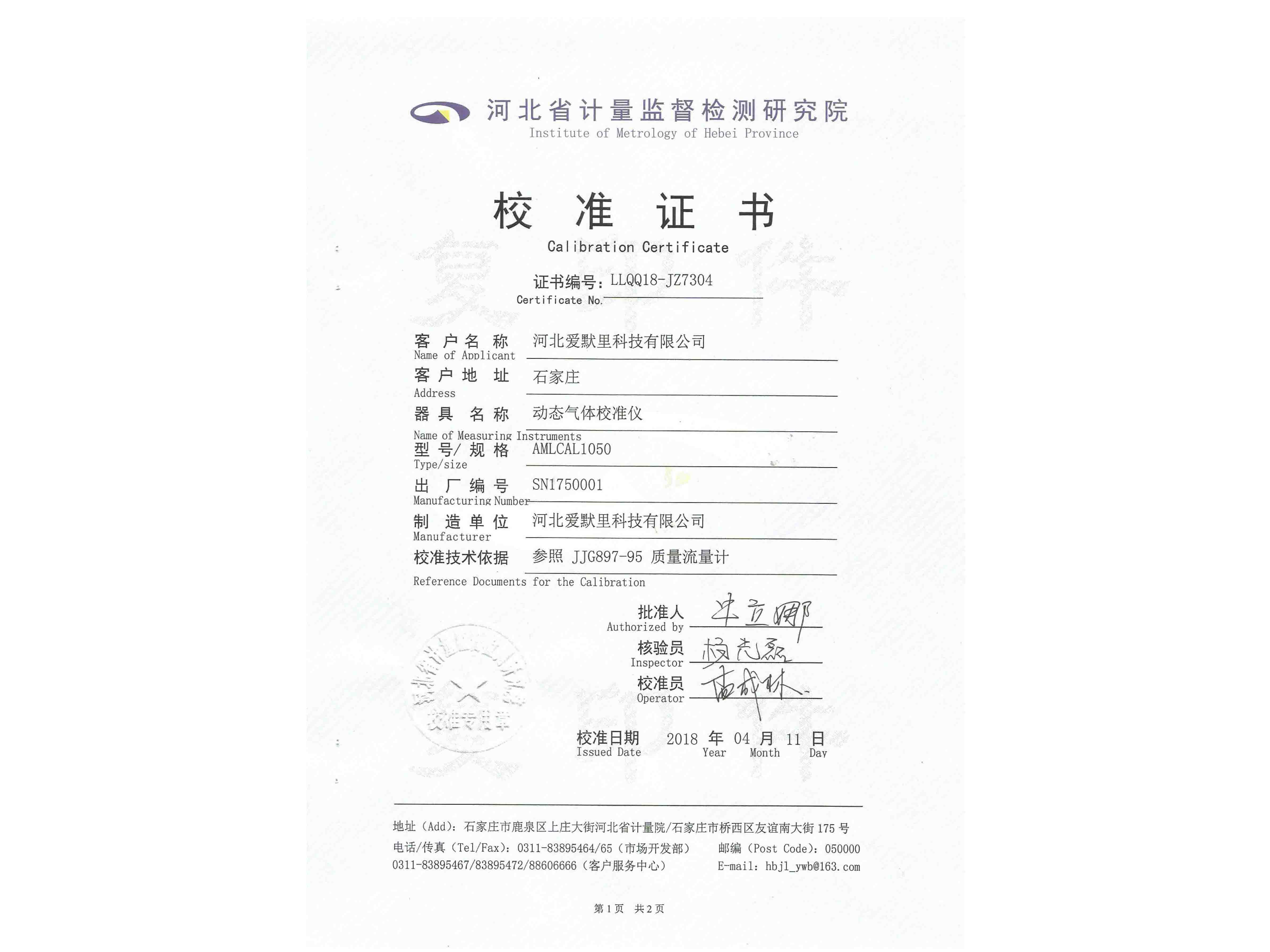 動態(tài)氣體校準(zhǔn)儀校準(zhǔn)證書